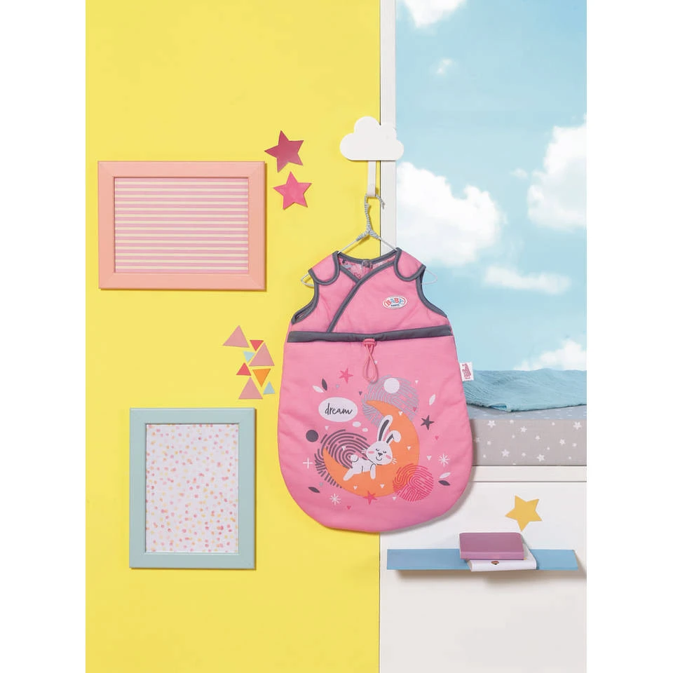 Heeft je BABY born pop slaap nodig? Dan kleed je haar in deze knusse BABY born slaapzak. Op de schouderbanden zit een handige klittenbandsluiting.