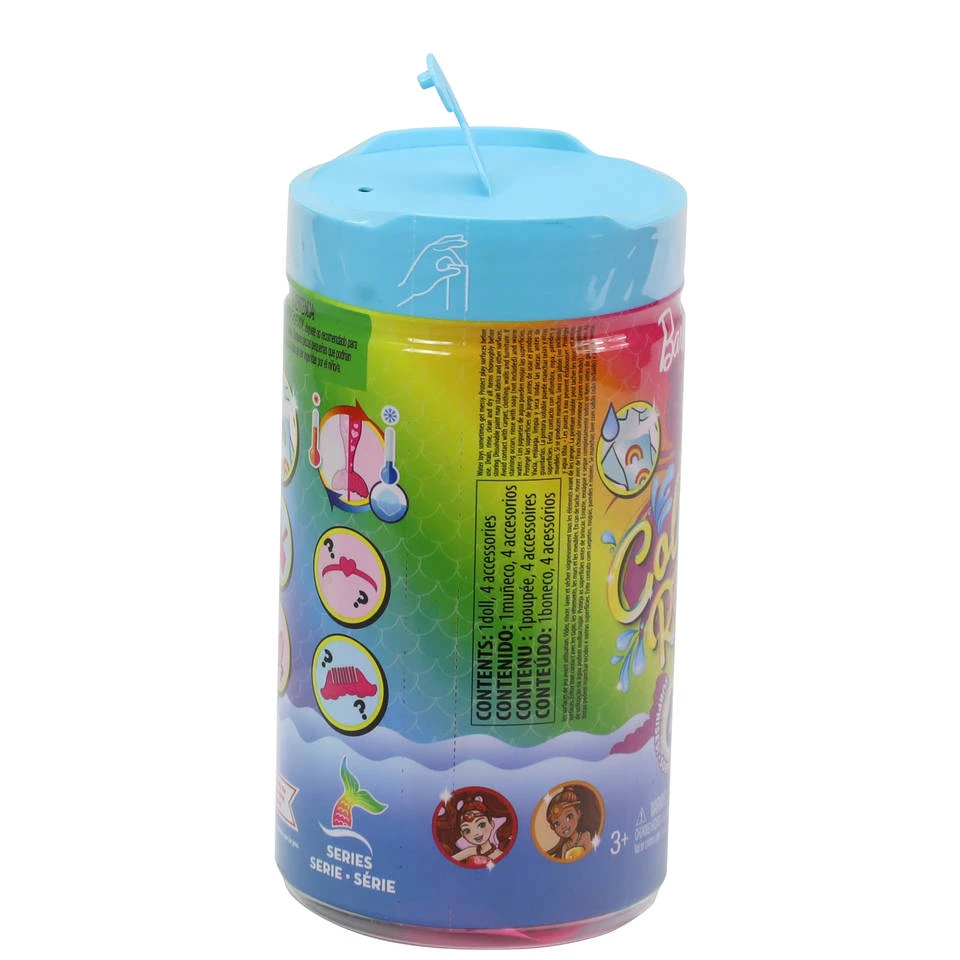 - Aan de binnenkant van de verpakking vind je een Color Reveal Chealsea zeemeerminpop.