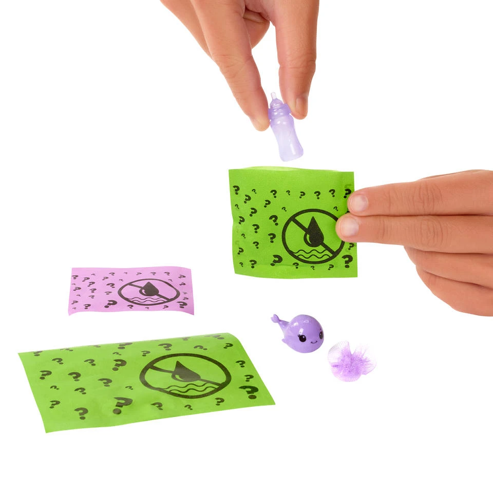 - Je maakt de 3 verrassingszakjes open om een snoezig dierenvriendje uit de zee, een kleurrijk rokje en een bijpassende fopspeen of een bijpassend flesje te vinden.
