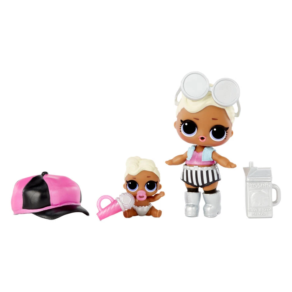 - De L.O.L. Surprise! Me & My Lil Sis kleurveranderende set bevat twee poppen, twee geheime berichten, twee flesjes, meerdere accessoires, twee mode-outfits, twee schoenen en een verrassende kleurveranderingsfunctie.