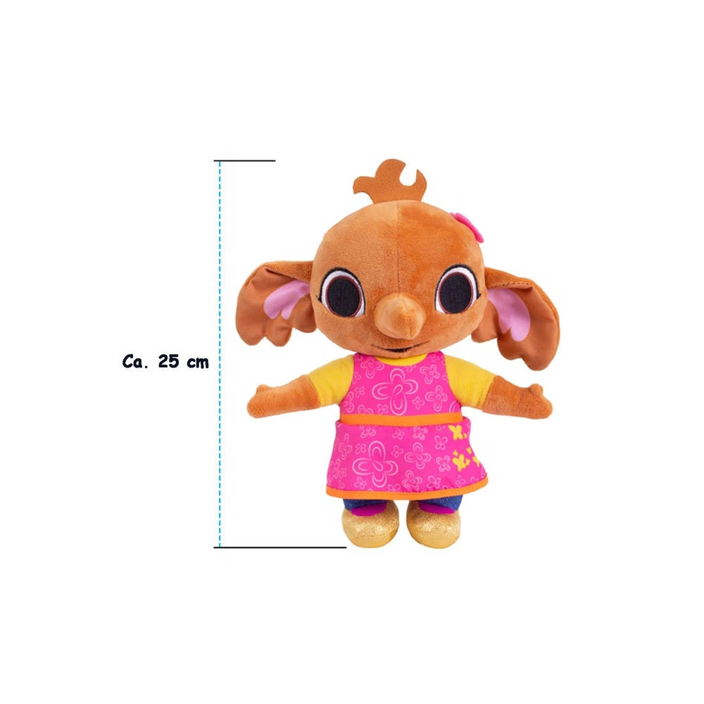 Kijk jij ook altijd naar de avonturen van Bing en zijn vriendjes? Dan ben je vast ook dol op deze Pratende Sula knuffel! Druk in haar buik en zij zal tegen je lachen en praten. Ze zegt wel 15 leuke woorden en zinnen, zoals: ”Hallo”, “Ik ben het!” en “Ik verander jou in een kikker, woesj!”. Sula is zeer gedetailleerd gemaakt van zachte stof, dus je kunt heerlijk met haar knuffelen!