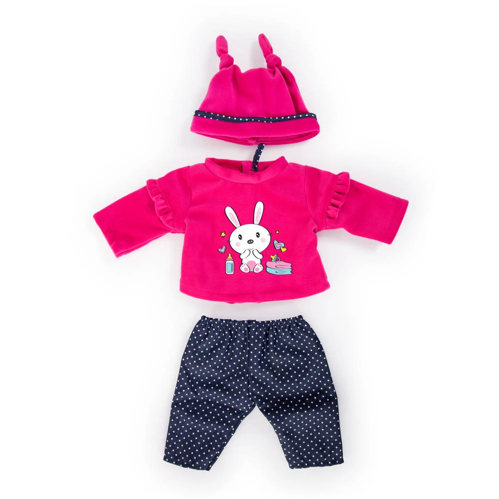 Voor je pop is deze deluxe poppenjurk met een afdruk van een konijn een perfecte aanwinst. Deze fantastische poppenoutfit bestaat uit drie delen en is ontworpen met mooie details. Deze mooie set bestaat uit een broek, een pullover en een pet. Bovendien heeft de outfit een prachtig motief op de bovenkant. Met klittenband en elastische band aan de broek is het zelfs voor kleine kinderhandjes makkelijk om hun pop aan te kleden. Met deze poppenkleertjes krijgt je favoriete pop niet alleen een individuele uitstraling, maar wordt bovendien de behendigheid al spelenderwijs geoefend. Deze jurk is geschikt voor poppen van 40 tot 46 cm.