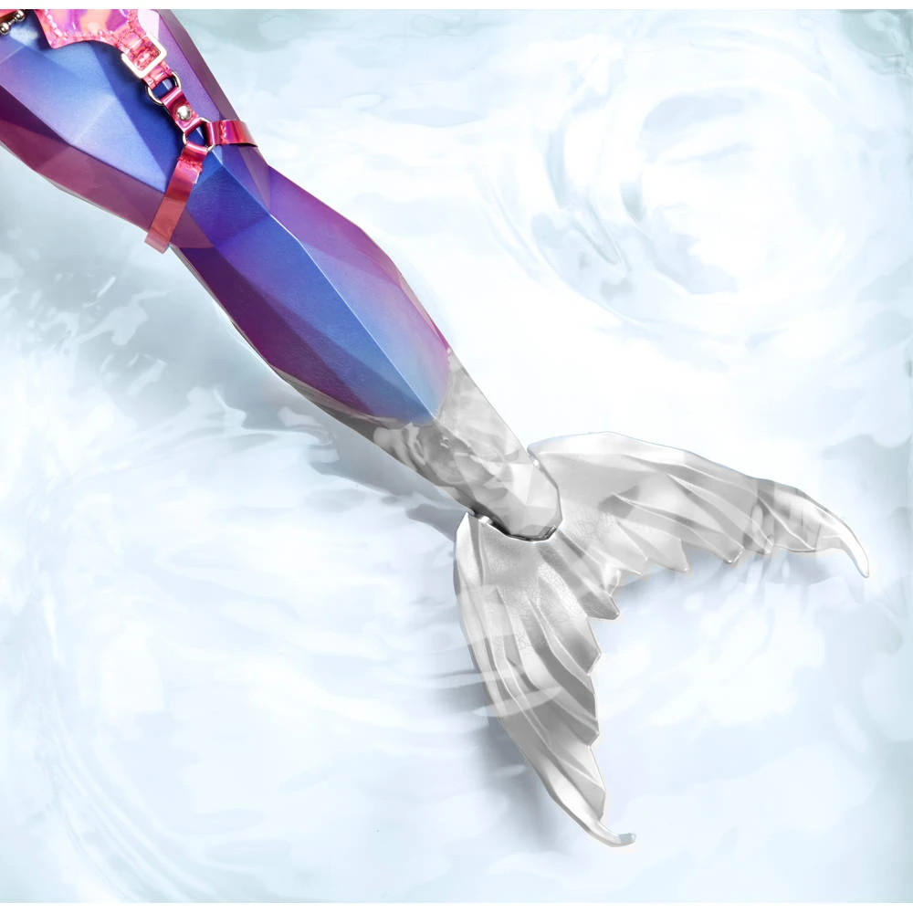 - Elke Mermaze Mermaidz-pop heeft een unieke, geschubde staart die magisch van kleur verandert als je hem onder water dompelt. De staart van Harmonique verandert van metallic paars en felroze naar zilverkleurig chroom bij contact met warm water.