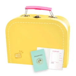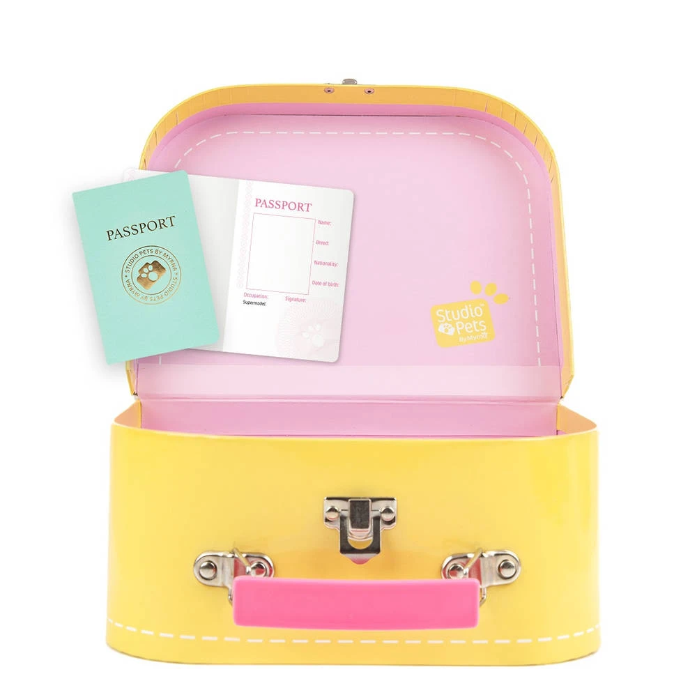 Deze prachtige gele koffer is uitermate geschikt voor een Studio Pets knuffel van 16 cm. Op die manier kan je je favoriete knuffel gemakkelijk overal mee naar toe nemen. De koffer wordt geleverd met een blanco paspoort speciaal voor jouw knuffel. Het koffertje is gemaakt van hoge kwaliteit karton.