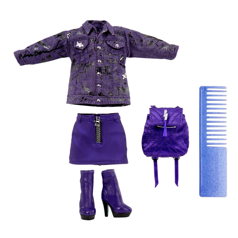 - De set bestaat uit een modepop, een complete poppenoutfit, een paar poppenschoenen, een paar sokken en poppenaccessoires: een rugzak van zachte stof die open en dicht kan, een haaraccessoire en een poppenkam.